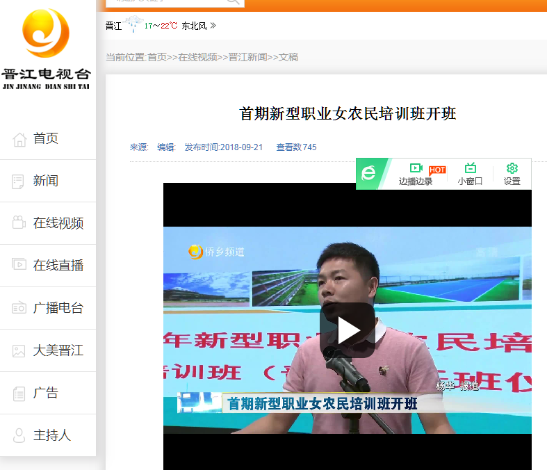 【晋江电视台】首期新型职业女农民培训班开班