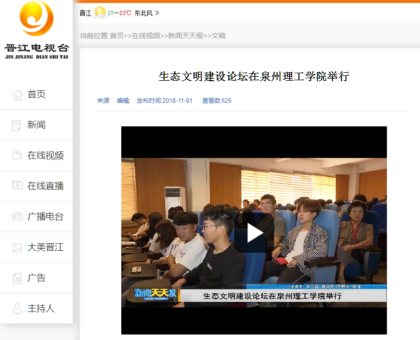 【晋江电视台】生态文明建设论坛在泉州理工学院举行