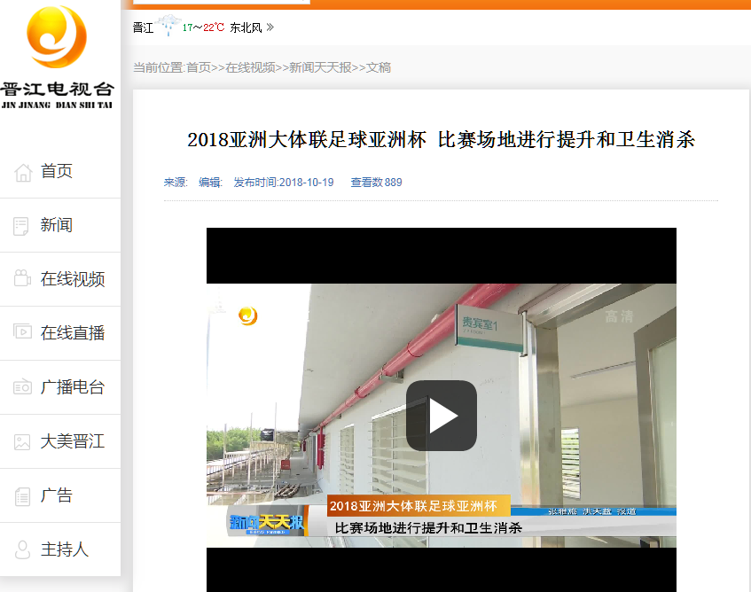 【晋江电视台】2018亚洲大体联足球亚洲杯 比赛场地进行提升和卫生消杀