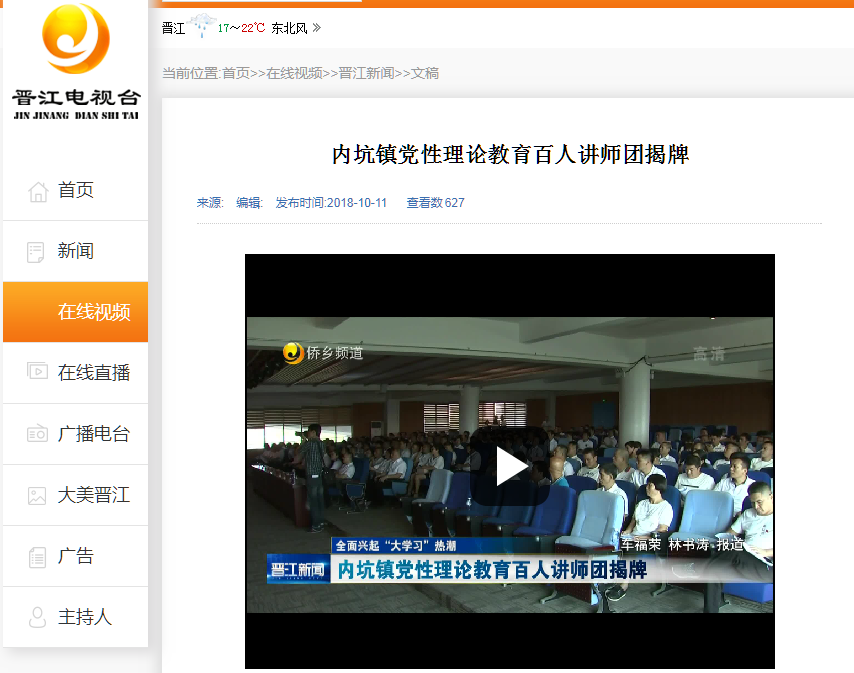 【晋江电视台】内坑镇党性理论教育百人讲师团揭牌