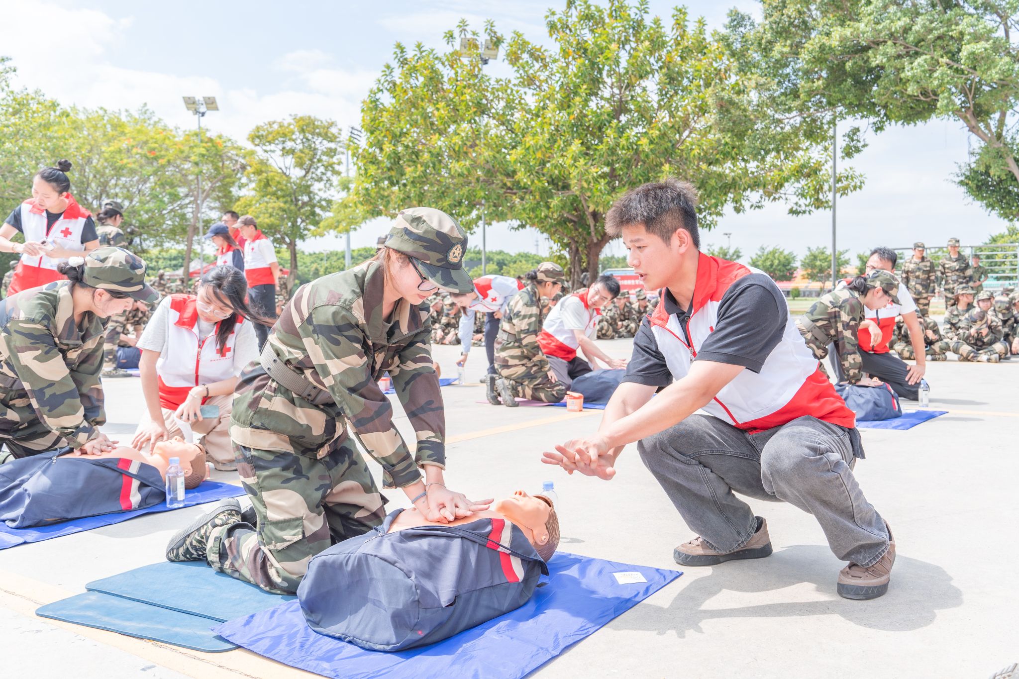 “掌心翘起,十指相扣,上身前倾,肩肘腕呈一条直线......”一声声指令从国旗台前传出,培训现场气氛热烈。9月17日,泉州职业技术大学成功举办应急救护培训。2025级新生学员在教官及40名红十字急救师资带领下,系统学习急救知识与实操技能。培训现场,教官和指导老师凭借丰富的经验和专业知识,通过深入浅出的讲解和规范准确的操作演示,向新生们详细介绍急救知识。他们重点强调了从环境评估、意识判断、呼救求助,到胸外按压与...