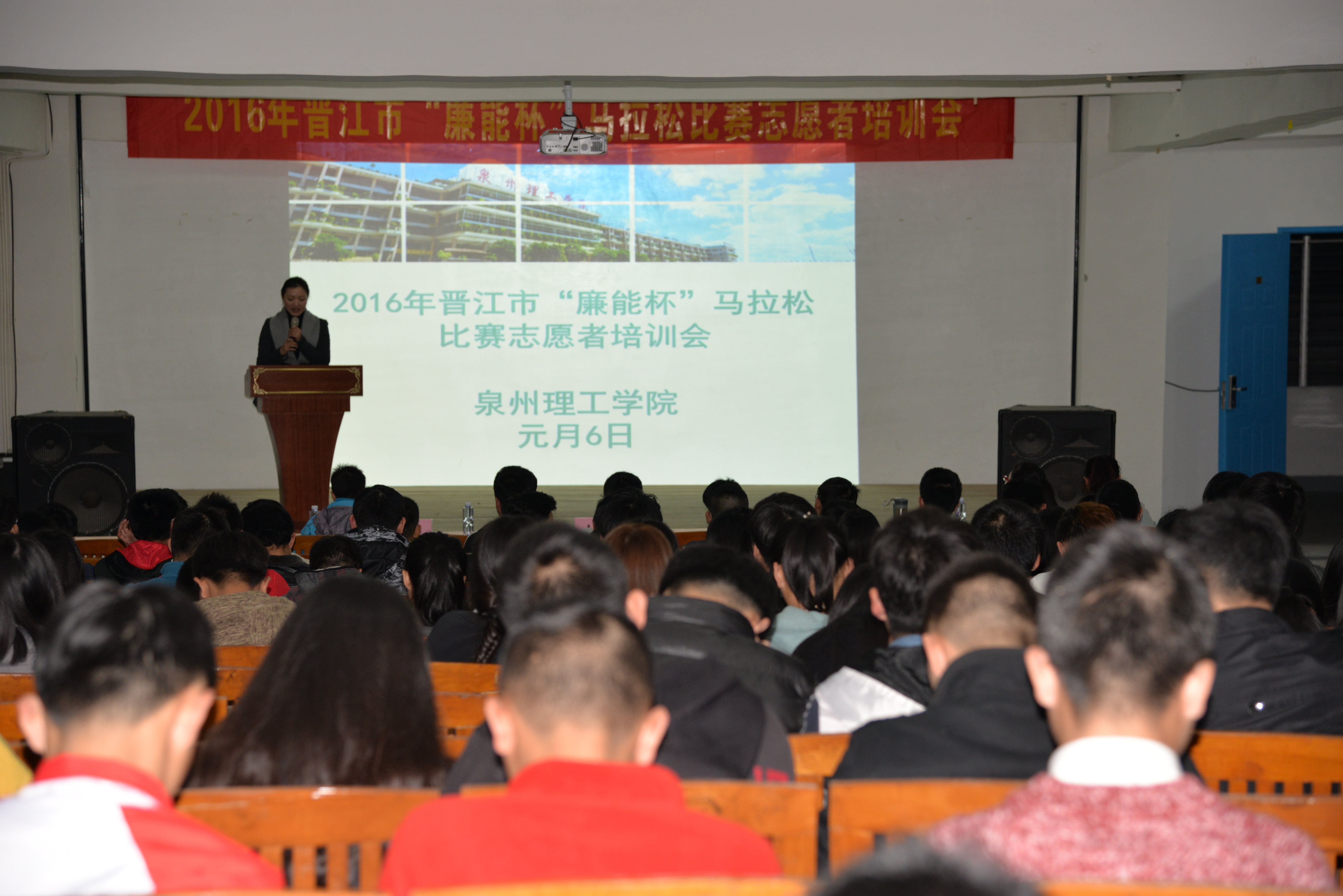 1 月6日晚,2016年晋江市“廉能杯”马拉松比赛志愿者培训会在我校举行,活动由晋江市公安局、晋江团市委主办,晋江市公安局团委书记杨周阳、晋江市市情讲解队副队长尤娴娴参加活动并做相关培训,我校计算机专业教师...