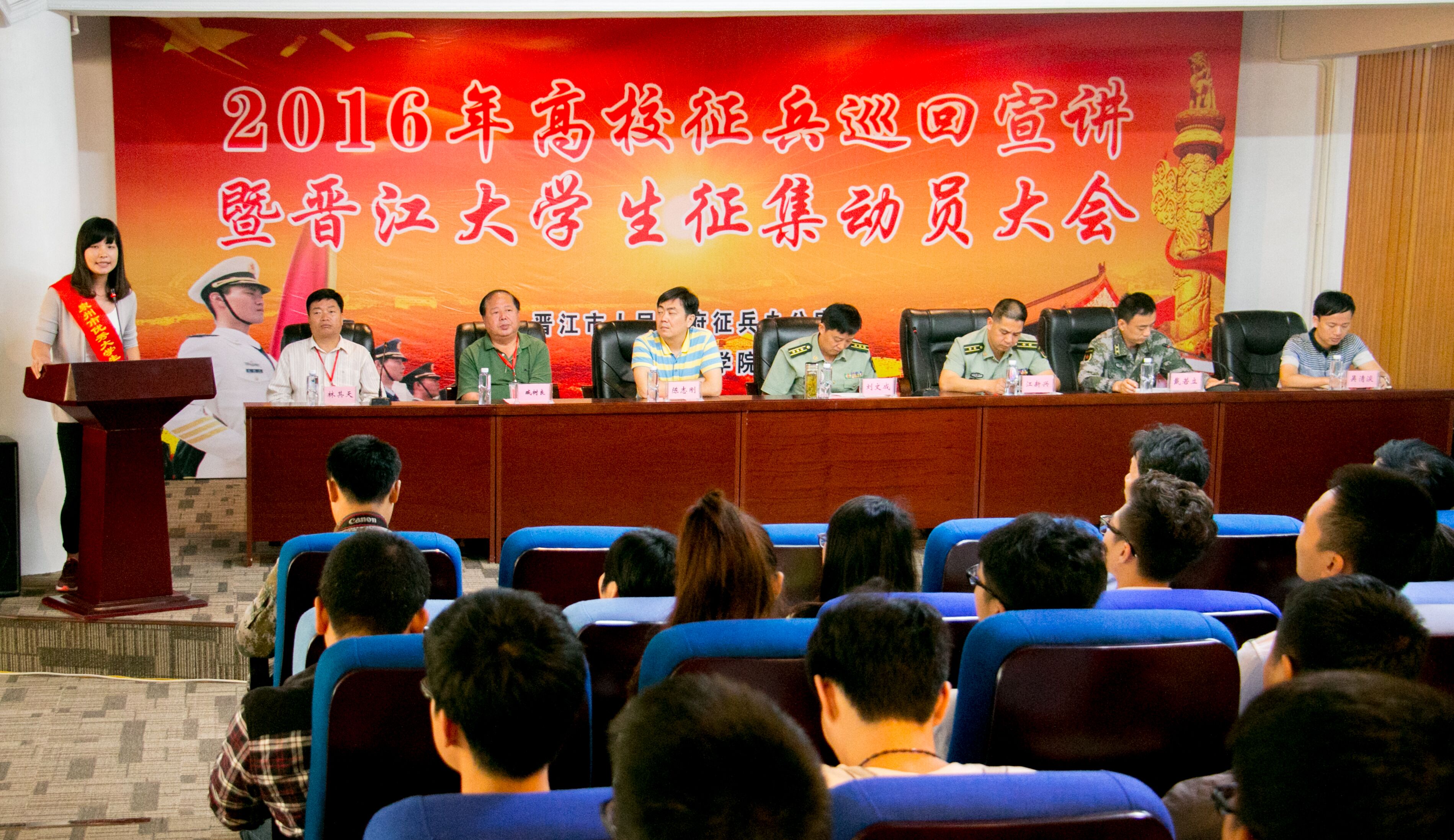 5月17日上午,2016年高校征兵巡回宣讲暨晋江大学生征集动员大会在我校东教学楼633报告厅举行。参加此次会议的主要领导有晋江市委常委、人武部政委刘文成、宣传部副部长吴清淡、晋江高教办主任陈志刚、军分区宣保科长...