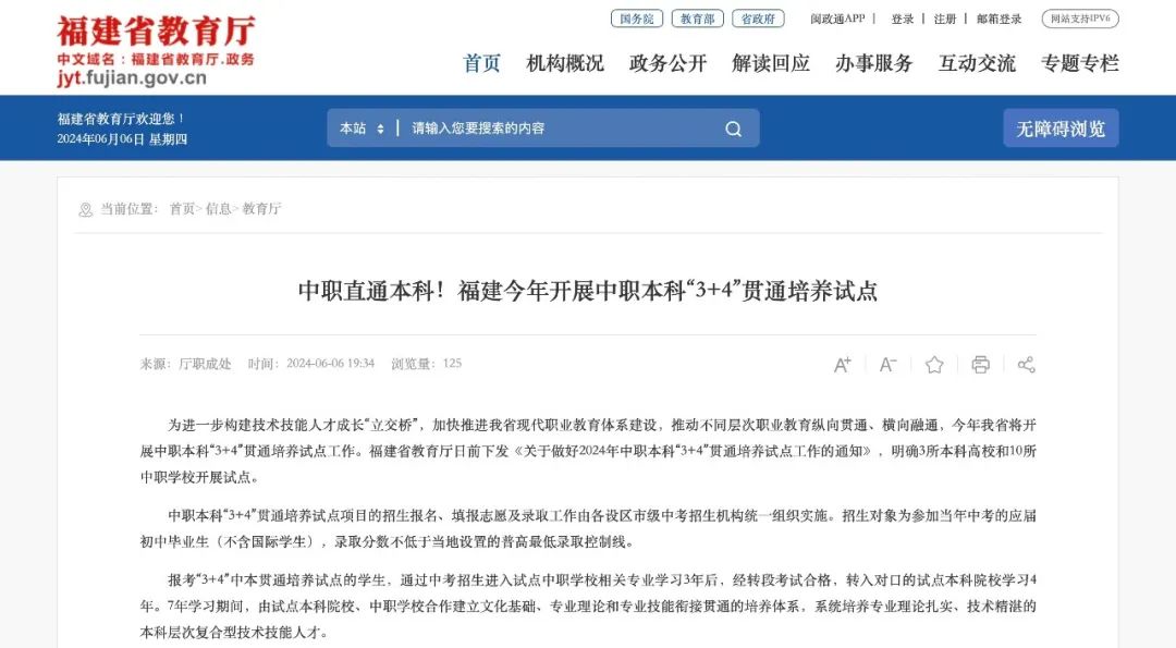 近日,福建省教育厅发布2024年中职本科“3+4”贯通培养试点工作的通知,计划面向全省招收500名初中毕业生,通过中考招生进入试点中职学校完成3年学习后,经考核合格后进入本科高校学习4年后,可获得全日制本科文凭。符合学位授予条件的,可获学士学位证书。泉州职业技术大学、福建技术师范学院和厦门华厦学院成为“3+4”贯通培养试点本科高校,晋江职业中专学校、晋江华侨职业中专学校、晋江晋兴职业中专学校、晋江安海职业中专...