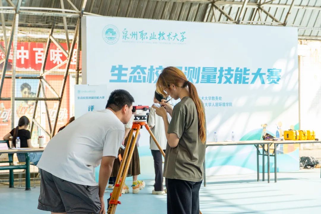 5月14日下午,泉州职业技术大学二期顶棚网球场内气氛热烈,一场独具匠心的“生态校园测量技能大赛”在这里拉开了帷幕。来自建筑工程、建筑设计、软件工程技术等不同专业的64名学子,组成16支“校园测量小分队”,在阳光下展开了一场关于专业理论和实践技能的双重较量。随着比赛开始的哨声响起,各参赛小组立即展开行动,四名队员分工协作,迅速扛起自动水准仪、三脚架、水准尺等专业测量设备,向着各自分配的测量路线进发。比赛...