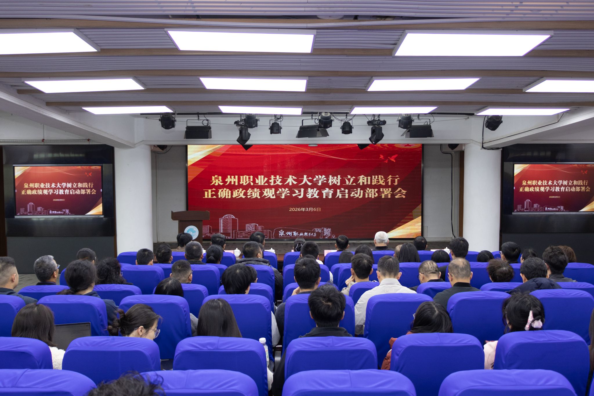 3月6日,泉州职业技术大学党委召开树立和践行正确政绩观学习教育启动部署会,学习习近平总书记关于树立和践行正确政绩观的重要讲话和重要指示精神,传达中央、省委和省委教育工委有关要求,部署开展学习教育工作。校党委书记傅志雄主持会议并讲话。会议指出,开展树立和践行正确政绩观学习教育,是党中央着眼党和国家事业发展全局作出的重要部署,对于推动“十五五”开好局、起好步,为以中国式现代化全面推进强国建设、民族复...