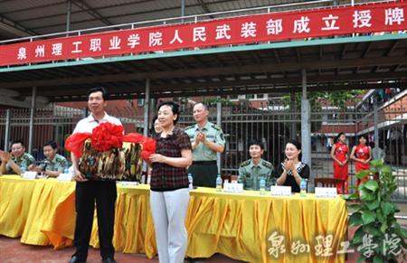 5月11日下午3点,泉州理工学院人民武装部成立授牌仪式在运动场举行。泉州市丰泽区委副书记郑进发、 区政府副区长许怡菲、人民武装部部长康彤明和我校校长苏志明、副校长庄文瑞、党委副书记苏白茹、学工处处长郭变玲...