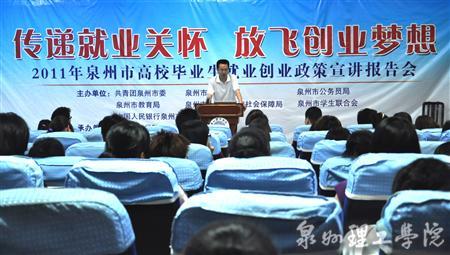 由共青团泉州市委联合泉州市教育工委、泉州市公务员局、泉州市教育局、泉州市人力资源和社会保障局、泉州市学生联合会及中国人民银行泉州支行等部门组成的“泉州市高校毕业生就业创业政策宣讲。 ...