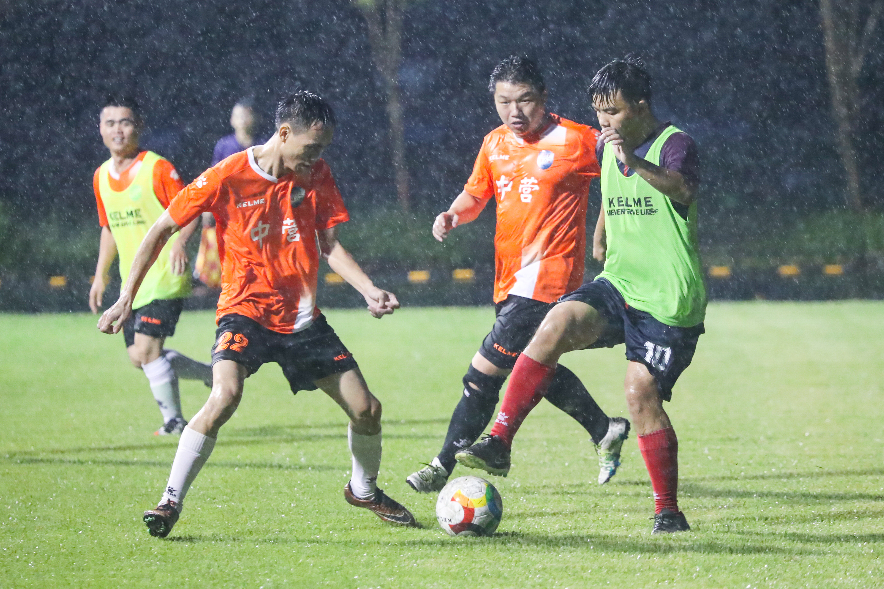 下午五点,历届校足球队队员分为老中青三代(02-06级,07-11级,12级-在校学生),在我校刚刚举办完亚洲大体联中国选拔赛的新球场上举行足球嘉年华。开赛不久,天公作美,滂沱大雨让这场深情的嘉年华成为史上最“酣畅淋漓”的纪念赛!第1场由元老级对战中生代,元老队以1比1的比分战平中生队,第2场中生代以2比1的比分战胜新生代,第3场元老级以4比4的比分战平新生代。