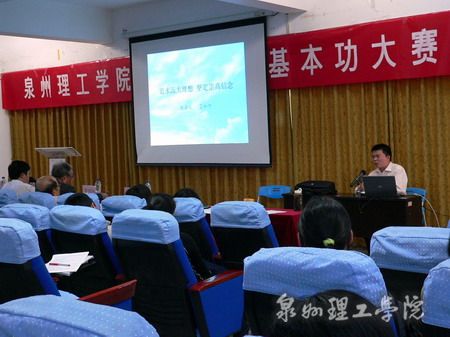 泉州理工学院首届教学基本功大赛11月14日下午在校学术报告厅举行。本次大赛由校教务处主办,旨在加强教师队伍建设,提高教师的师德和业务水平,全面提高教育教学质量,鼓励广大教师进行教学创新,推动素质教育的深入发展。学院党委副书记毛伟雄、教务处处长朱国清及各系主任组成的专家委员会担任此次比赛评委。
