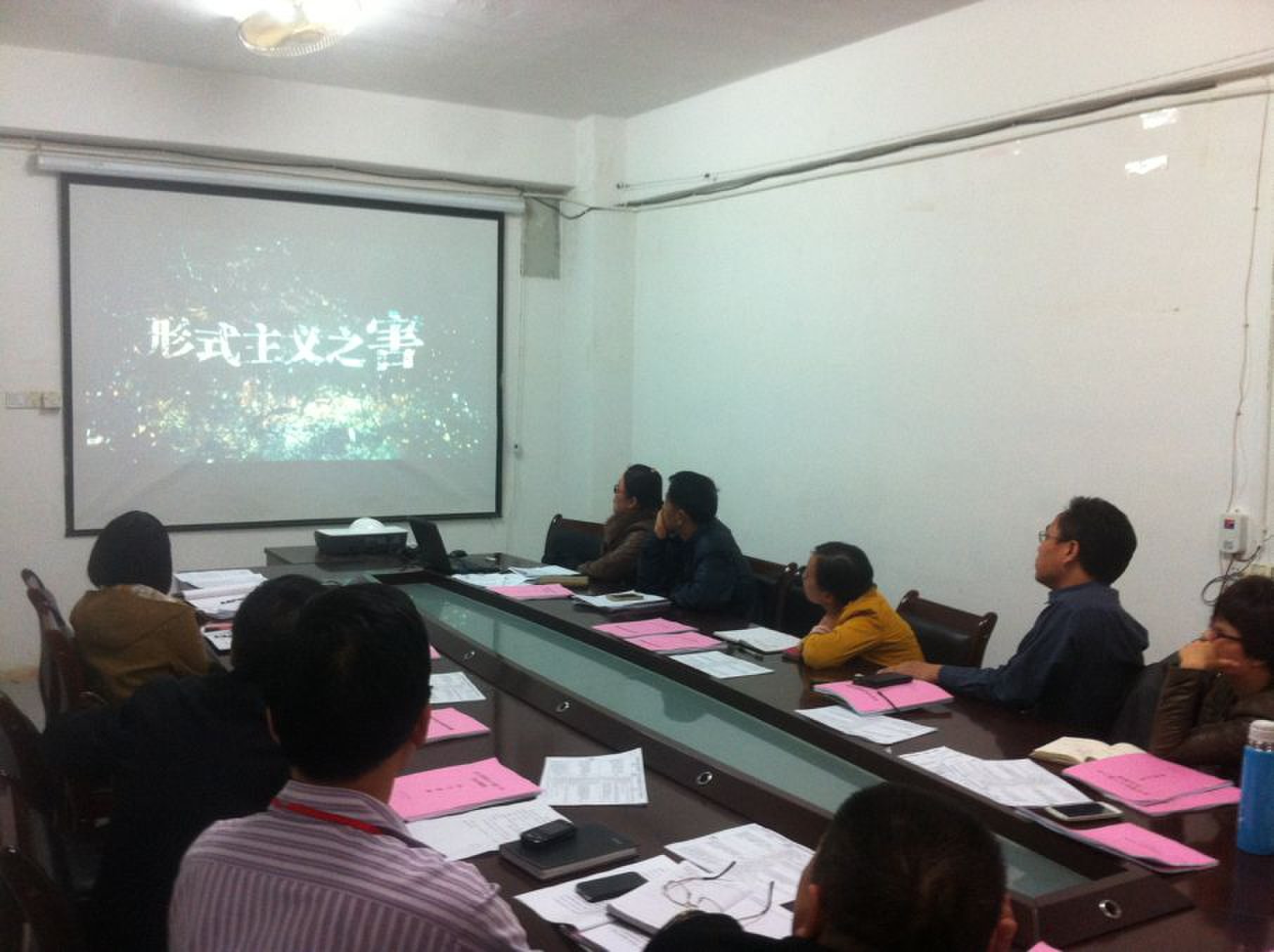 党委中心组成员正观看《四害之风》的专题片