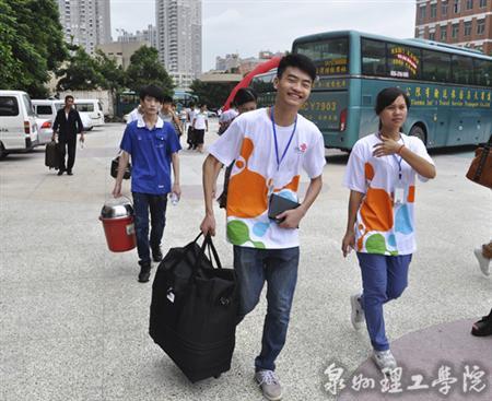 今年学校继续实行新生网上预报到,只要新生收到录取通知书后,在规定时间内按照要求完成预报到程序且及时缴费代扣,到校时只需将录取通知书上的条形码进行扫描,即可直接入住公寓,使新生报到更加方便快捷,为新生和家长免去了等待和奔波之苦。为更好地服务新生,学校在泉州中心站、新车站、动车站、火车站和晋江动车站设立新生接待点,并在泉州校区设立中转站,安排迎新专车往返接送。