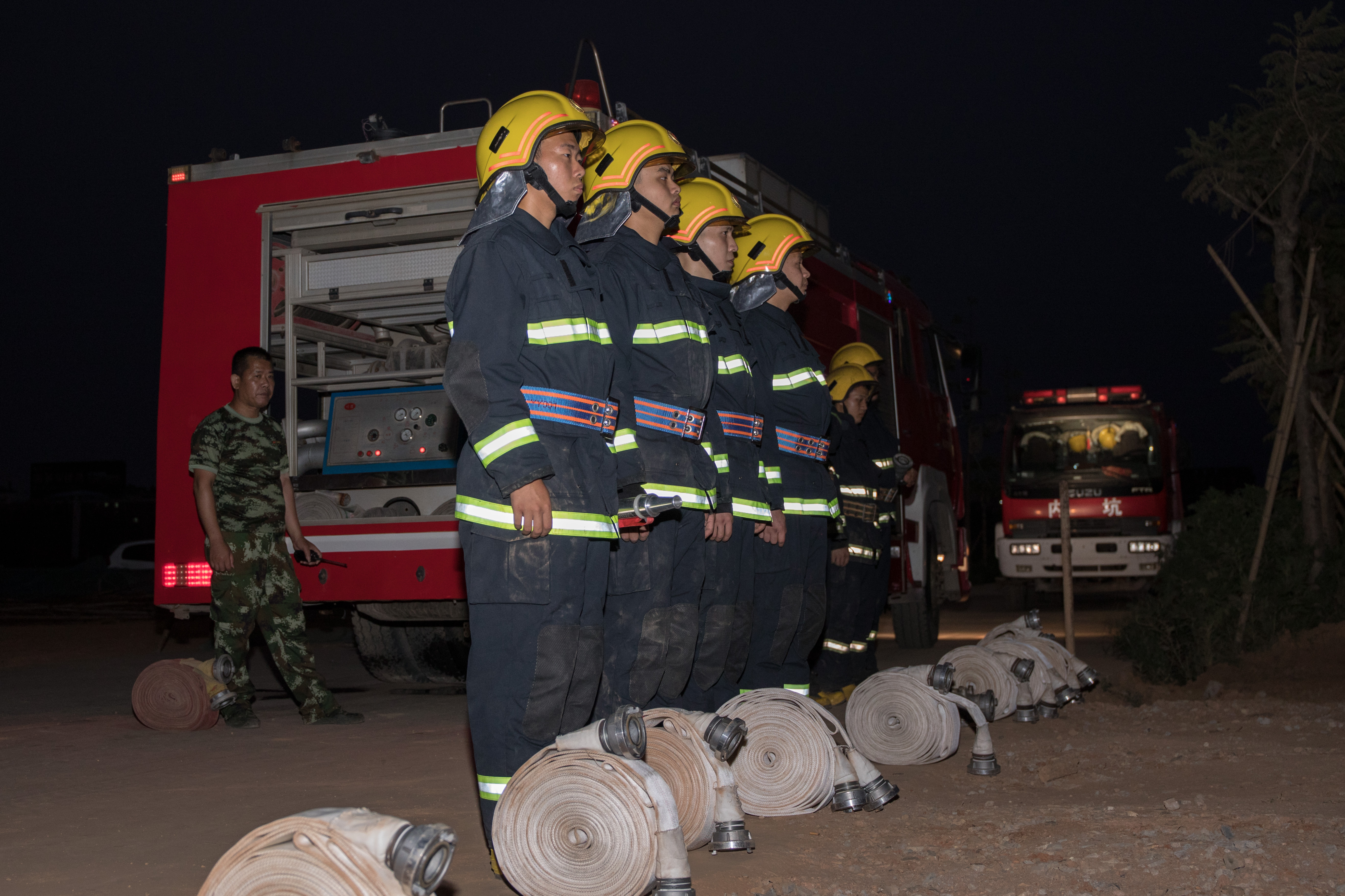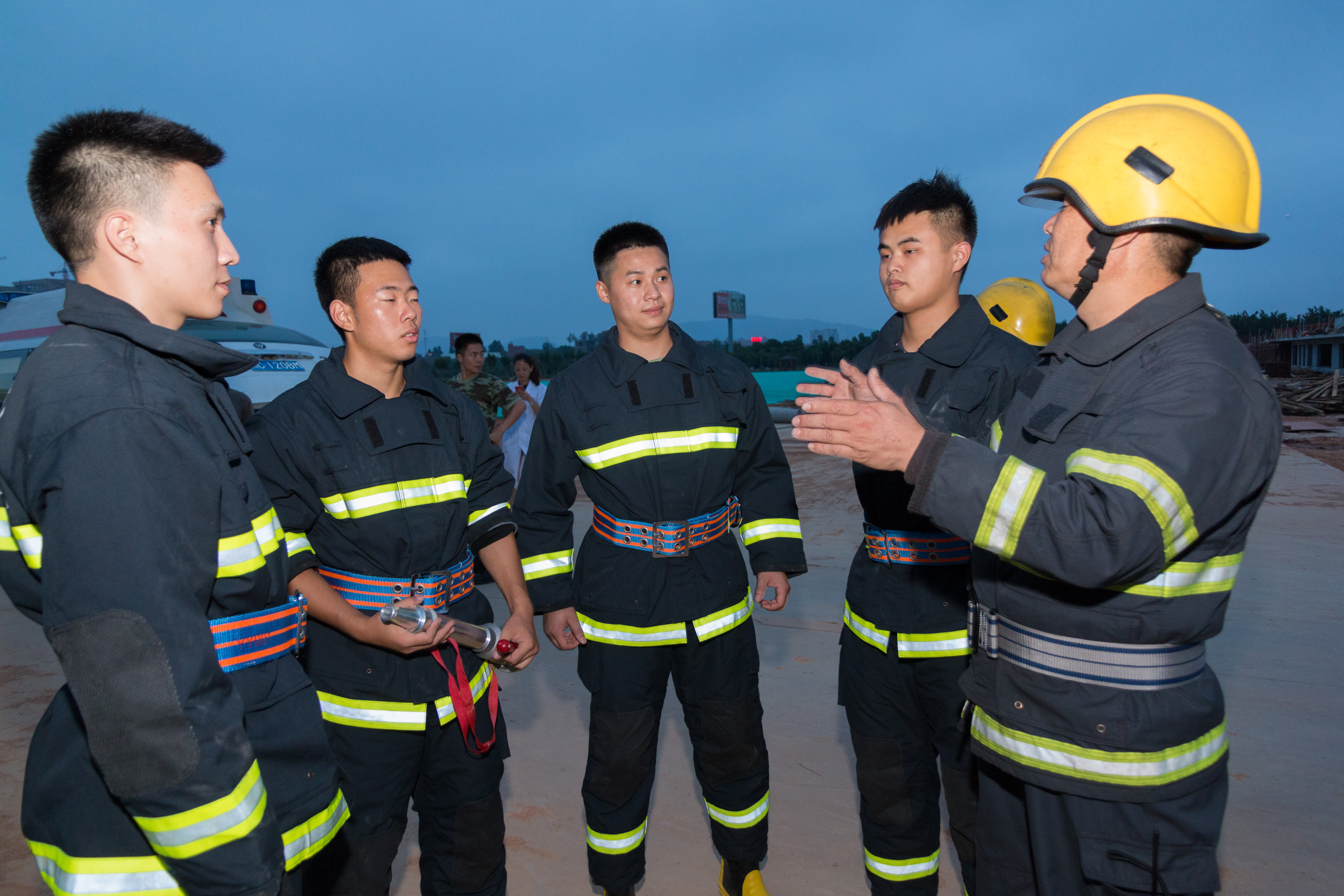 消防官兵整装待发,做好各项演练准备