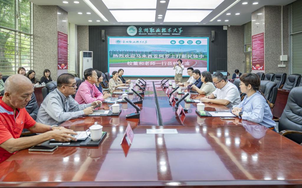 双方举行交流见面会。姚丹对马来西亚吉打州亚罗士打新民独立中学中国泉州教育考察团一行的到来表示热烈欢迎,介绍学校职业教育概况以及对外合作交流的成效等情况。接着,双方就夏令营、技术技能培训、学历提升、教师培训、“中文+职业技术”项目等方面进行探讨交流,并达成初步共识。