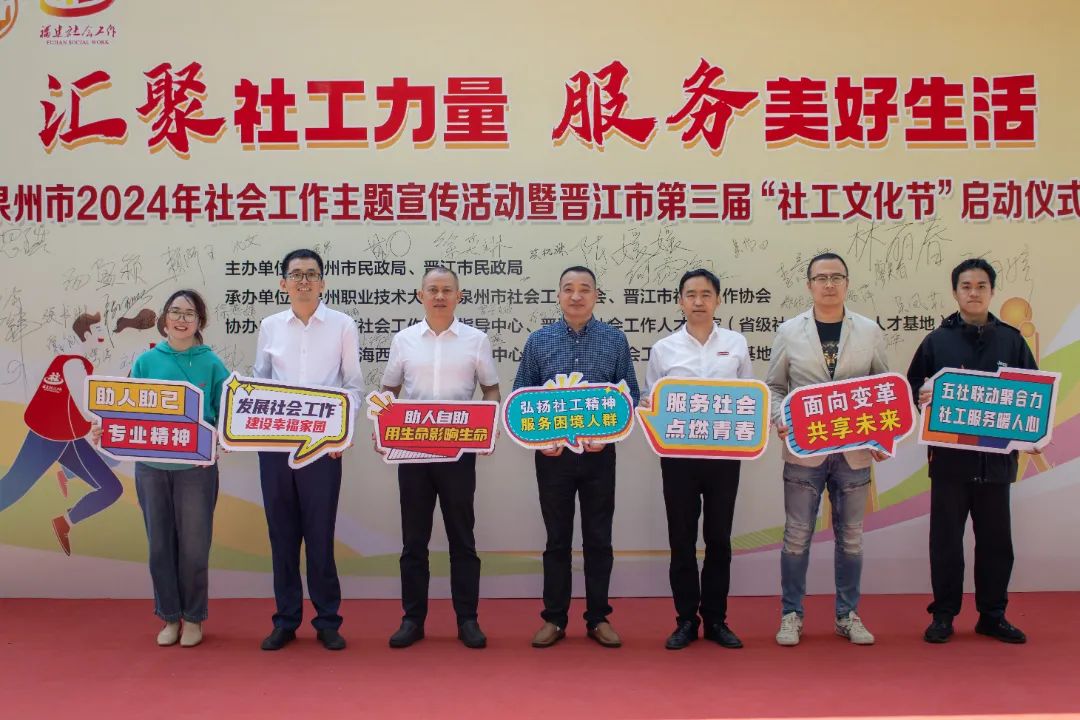 3月26日,泉州市民政局联合晋江市民政局在泉州职业技术大学,隆重举行“汇聚社工力量 服务美好生活”的泉州市2024年社会工作主题宣传活动暨晋江市第三届“社工文化节”启动仪式。