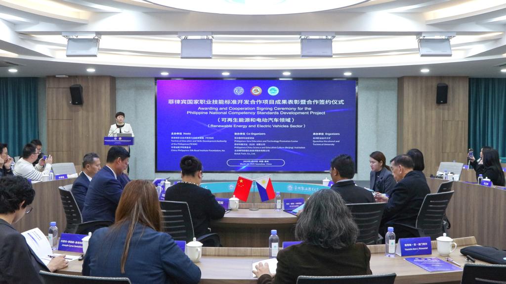 3月24日,菲律宾国家职业技能标准开发合作项目“可再生能源和电动汽车领域”成果表彰暨合作签约仪式,在泉州职业技术大学举行。活动由菲律宾职业技术教育与技能发展署(TESDA)、中菲丝路学院基金会共同主办,泉州职业技术大学承办。