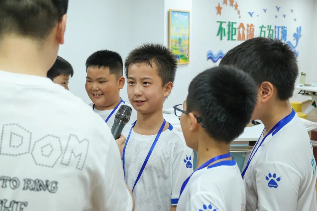 开营首日,一场别开生面的心理团建活动便打破了陌生感,“桃花朵朵开”破冰游戏迅速点燃现场氛围;报纸建塔”挑战加深团队协作,“夏日粘土奇遇”环节为活动增添了无限创意与乐趣。随后的非接触式心理互动测评,帮助团队老师了解营员情况,为夏令营活动提供参考。趣味运动会上更是热闹非凡。足球保龄球、摸石过河、纸杯搭搭……营员们为团队荣誉拼搏,陈少聪赢得比赛后与队友相拥:“一起努力的感觉真好!”