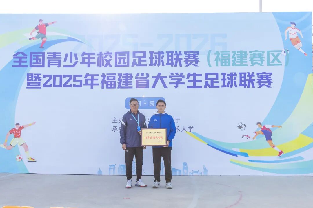 11月23日至29日,2025-2026全国足球联赛(福建赛区)暨2025年福建省大学生足球联赛在泉州职业技术大学举办。来自全省多所高校的队伍齐聚绿茵场,以球会友、拼搏进取。我校男足获男子丙B组三等奖,队员蔡彬彬荣获“最佳射手”,学校同时获评体育道德风尚奖。赛事组织有序、保障有力,展现了我校体育育人的扎实成效。
