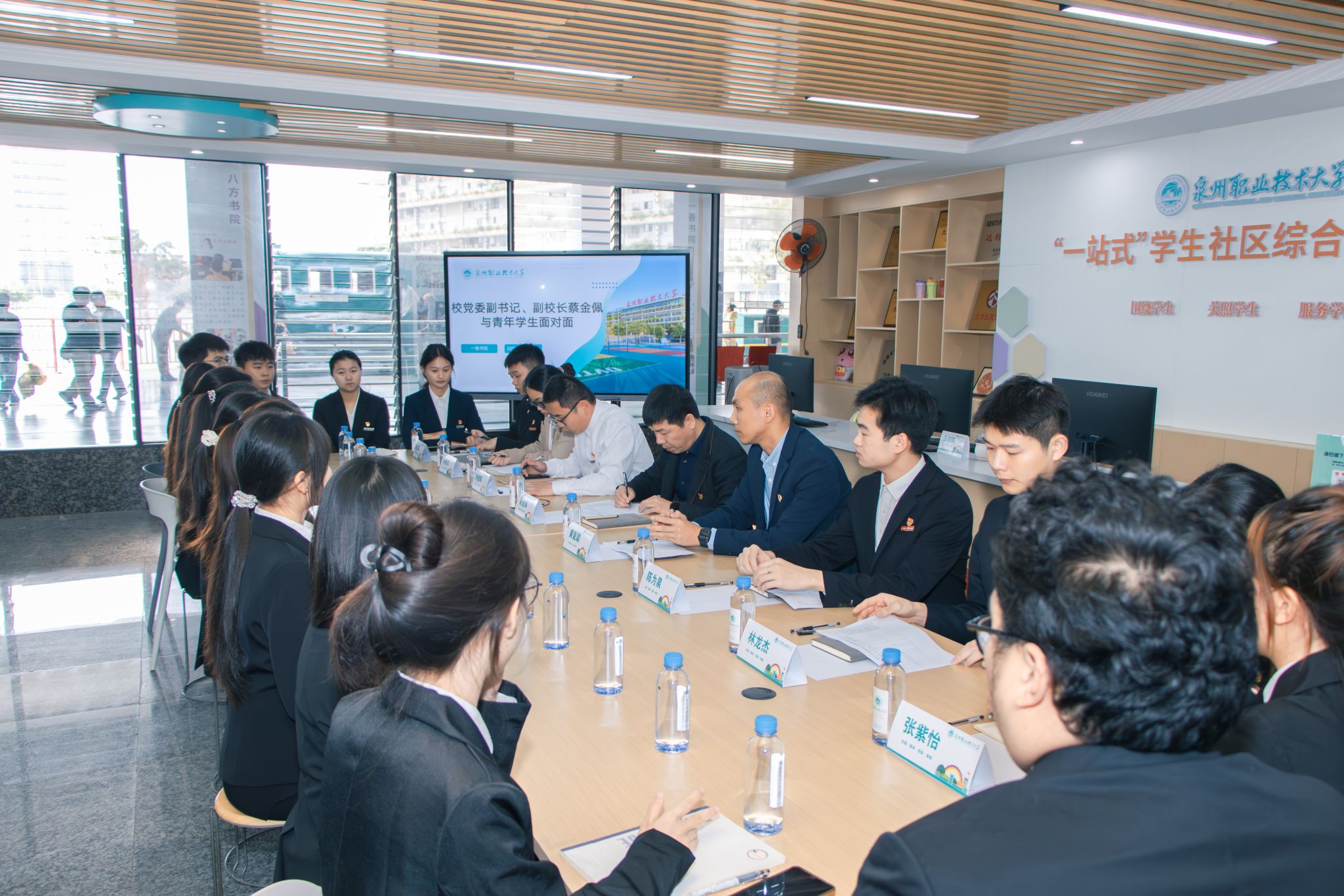 如何引导青年学子扣好人生第一粒扣子?怎样将立德树人融入日常点滴?12月24日中午,泉州职业技术大学一善书院举行了一场别开生面的师生交流会。校党委副书记、副校长蔡金佩与第22期党员发展对象及青年学生代表围坐一堂,围绕理想信念、成长成才与使命担当等话题展开深入交流,为同学们带来一堂生动而深刻的思想成长课。