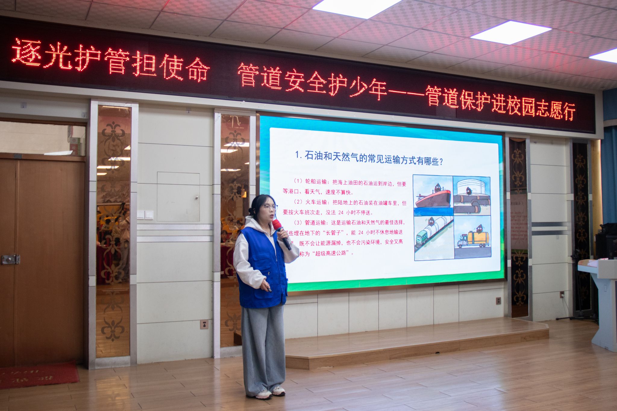 活动中,泉州作业区志愿者通过PPT与宣传手册,系统讲解了石油天然气基础知识、管道保护法律法规、典型事故案例及应急处置要点。他们从加油站、汽车燃料等日常生活场景切入,引导孩子们认识油气资源与日常生活的紧密联系,理解管道作为国家能源“动脉”的重要意义,并强调保护管道是每个人的责任。