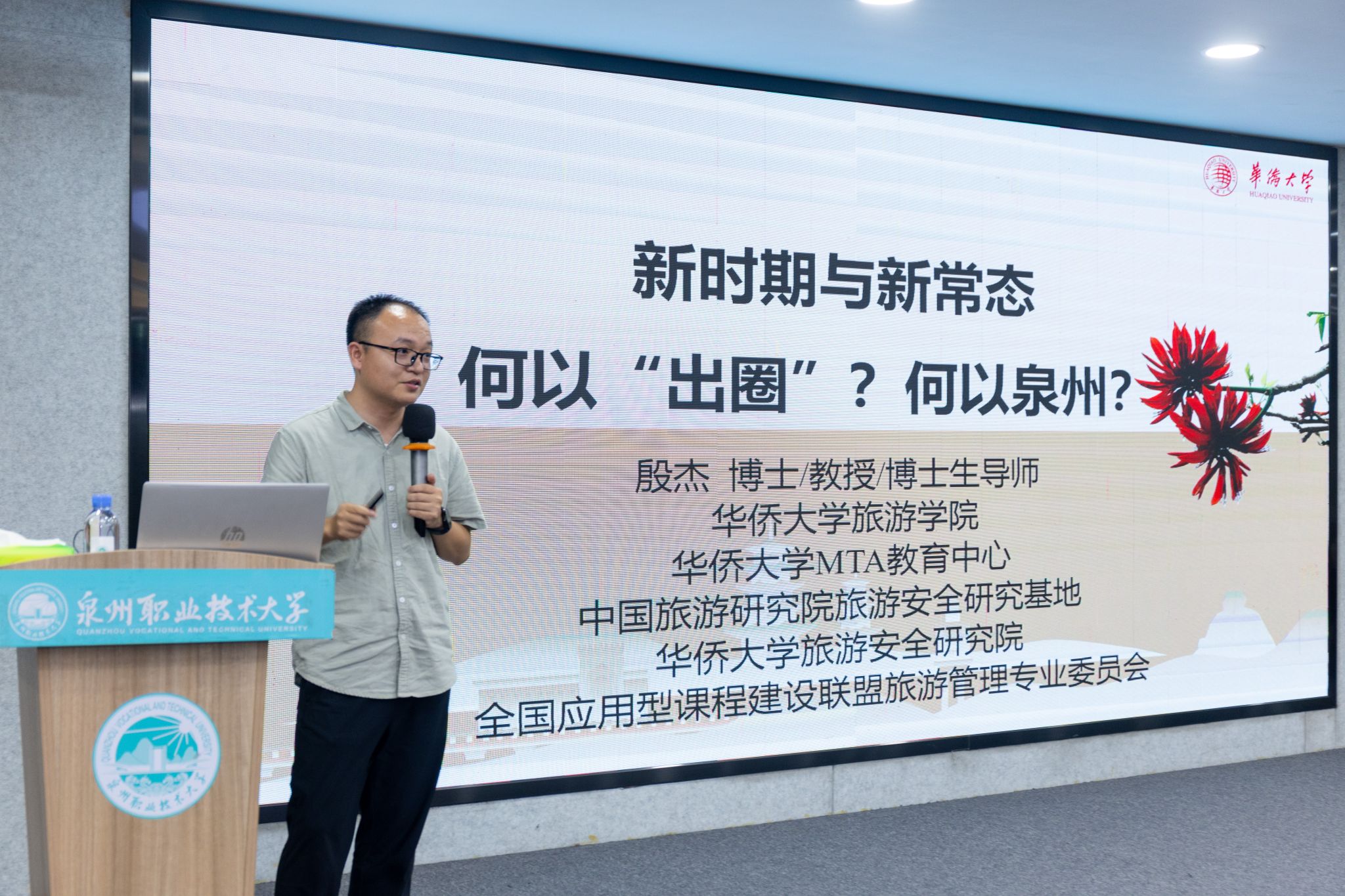 殷杰教授以“新时期与新常态:何以‘出圈’?何以泉州?”为题,从移动互联网时代消费行为变迁切入,剖析城市“出圈”逻辑。他指出,泉州需依托“世遗古城”“烟火气”等特色,通过古城修缮、蔡国强烟花秀等活动提升城市颜值,以簪花围、小吃文化等激发兴趣,优化营商环境强化服务,打造“产品+文旅+产业”品牌矩阵,实现从“网红”到“长红”的蝶变。“城市发展要善用AISAS模型,让游客从注意、兴趣到搜索、行动,最终形成分享传播。”殷杰以丁真现象、淄博烧烤等案例,阐释内容与体验驱动的流量转化路径。