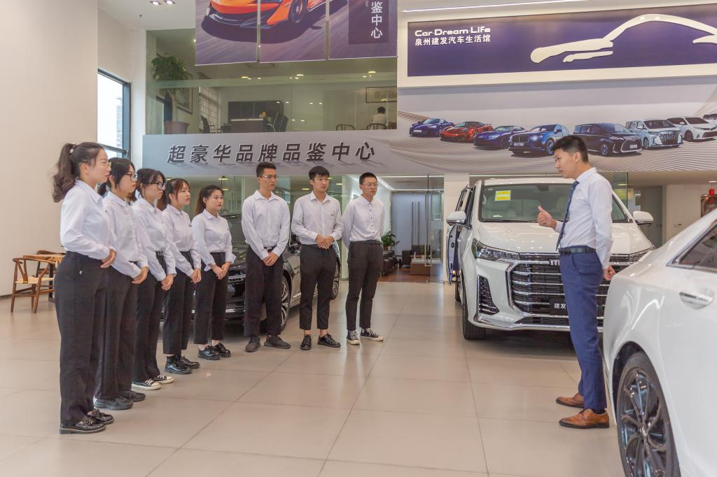 这一次的实训课地点,就在汽车学院校外实训基地之一的厦门建发汽车泉州生活馆。当天,生活馆特别派出了销售经理张琪舒、技术经理刘贵林与陈明福老师一起为这批学员进行实训。