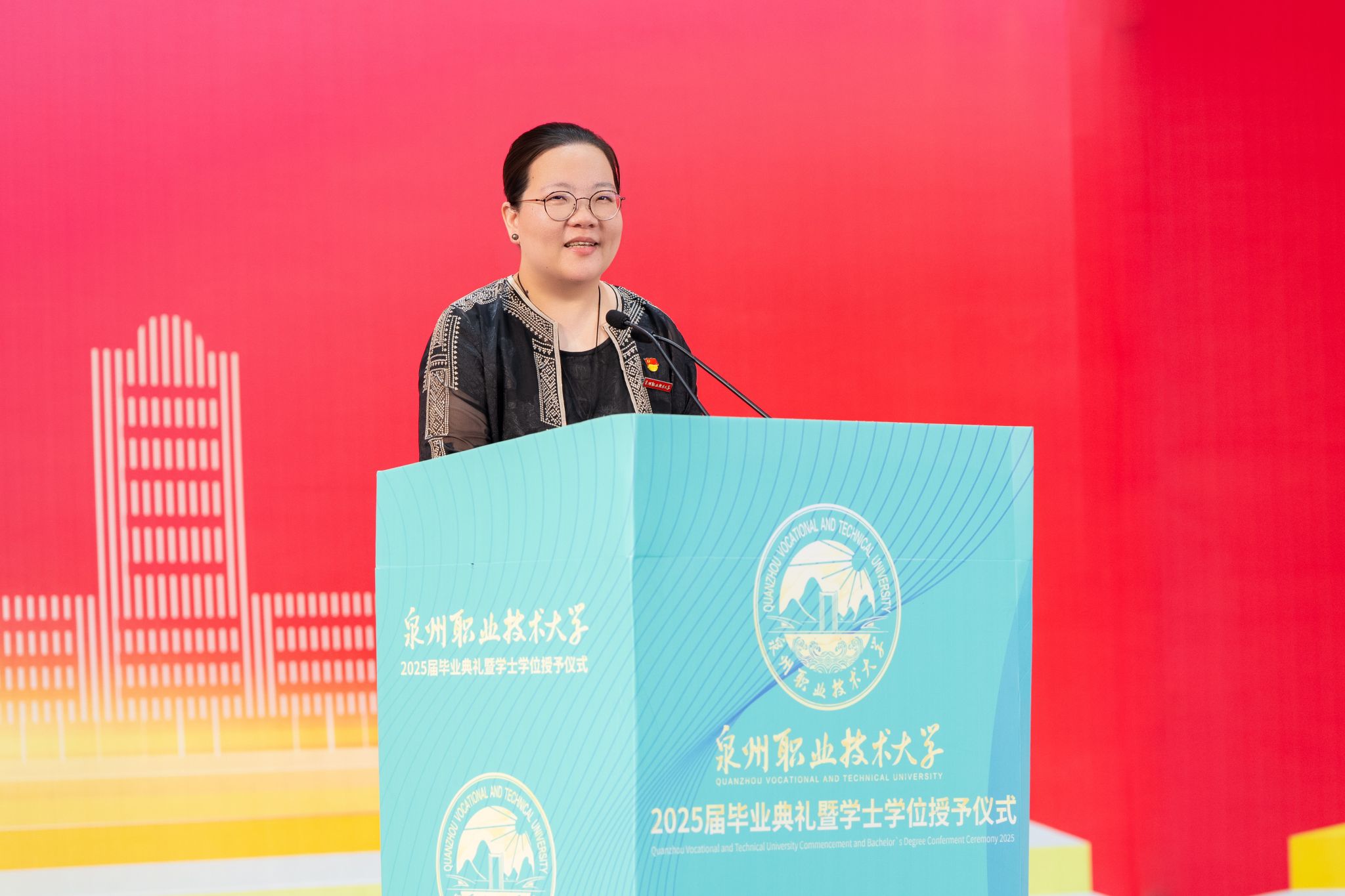教师代表、商学院院长姚宏伟以“青春折叠”为题发言,回顾自加入泉大以来,带领商学院推动商科数智化改革,建设安踏电商产业学院等,获全国党建样板支部、省级教学成果一等奖等成果,学生在技能大赛中屡创佳绩。