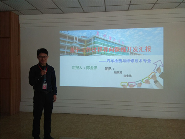 转训分享会首先由郑丽萍老师主讲,讲授的是《汽车售后服务接待》这门课程改革过程。通过PPT展示内容分析、岗位分析、角色扮演、资源库的应用、课程建设等方面。可以看出从传统模式课程到通过改革后的基于工作化系统课程的变化,郑老师也提出了在课程改革的过程当中遇到的一些问题,也提供了一些建议。