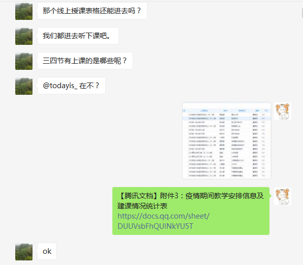 老师们互相交流,分享线上教学平台的使用感受,提出个人线上教学的经验与方法,给其他上课的老师提供参考。对使用线上教学平台不懂的地方,在群里互相帮助解决。
